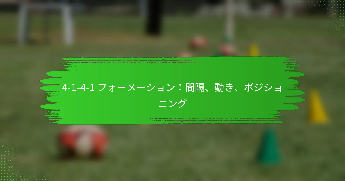 4-1-4-1フォーメーションは、サッカーにおける戦術的なセットアップで、4人のディフェンダー、1人の守備的ミッドフィールダー、4人のミッドフィールダー、1人のフォワードで構成されており、攻撃と防御の両方にバランスの取れたアプローチを提供します。このフォーメーションでは、効果的なスペーシング、ダイナミックな動き、戦略的なポジショニングが不可欠であり、チームがパスの機会を創出しながら防御の堅実さを維持できるようにします。これらの原則に焦点を当てることで、選手はパフォーマンスを最適化し、さまざまなゲーム状況に適応できます。