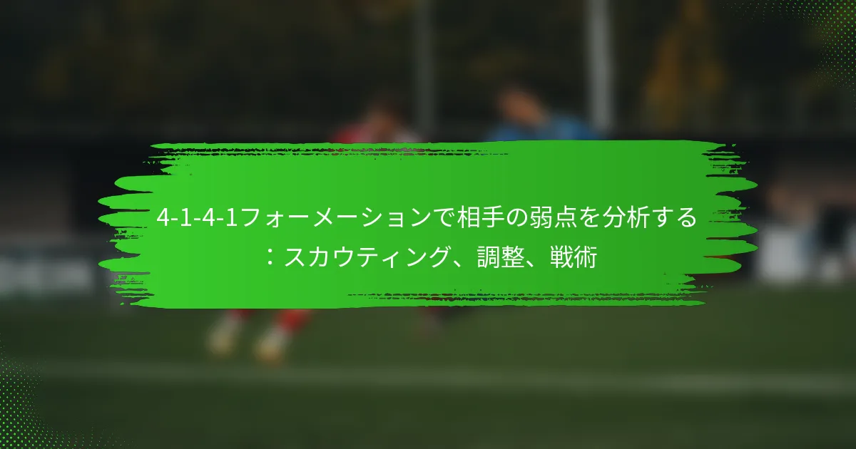 4-1-4-1フォーメーションは、サッカーにおいて守備の堅実さと強力な中盤の存在感をバランスよく兼ね備えた多用途な戦術セットアップです。効果的なスカウティングは、相手の弱点を特定するために不可欠であり、コーチが戦略を調整し、リアルタイムでの変更を行うことを可能にします。ライバルチームの強みと脆弱性を活用することで、4-1-4-1フォーメーションはフィールドでのパフォーマンスを向上させるために動的に適応できます。