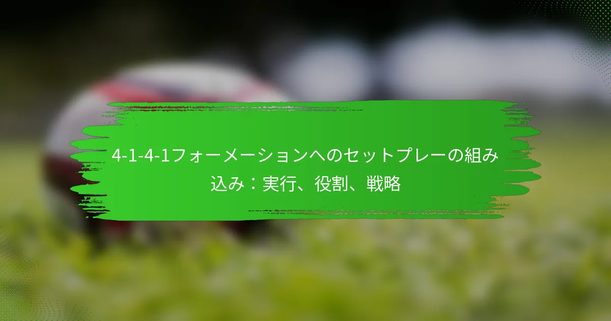 4-1-4-1フォーメーションにセットプレーを組み込むことは、チームの攻撃力と守備力を最大限に引き出すために不可欠です。コーナーキックやフリーキックなどのセットプレーにおける選手の役割の明確なコミュニケーションと正確な実行は、試合の結果に大きな影響を与える可能性があります。これらのプレーを定期的に練習し、相手の弱点を突く戦略を調整することで、チームは試合の重要な瞬間における効果を高めることができます。