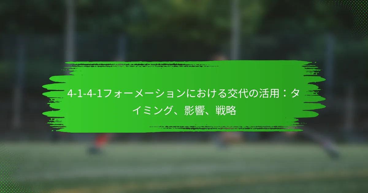 4-1-4-1フォーメーションは、サッカーにおける戦術的な配置であり、中盤のコントロールと守備の安定性を重視し、攻撃への効果的な移行を可能にします。このフォーメーション内での戦略的な交代は、チームのパフォーマンスを向上させ、選手の疲労を管理し、試合の進行するダイナミクスに適応するために不可欠です。これらの交代のタイミングを効果的に行うことで、チームの構造やフィールド上での全体的な効果に大きな影響を与えることができます。